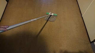 鉄骨階段は洗車ブラシでこすって拭き取ります